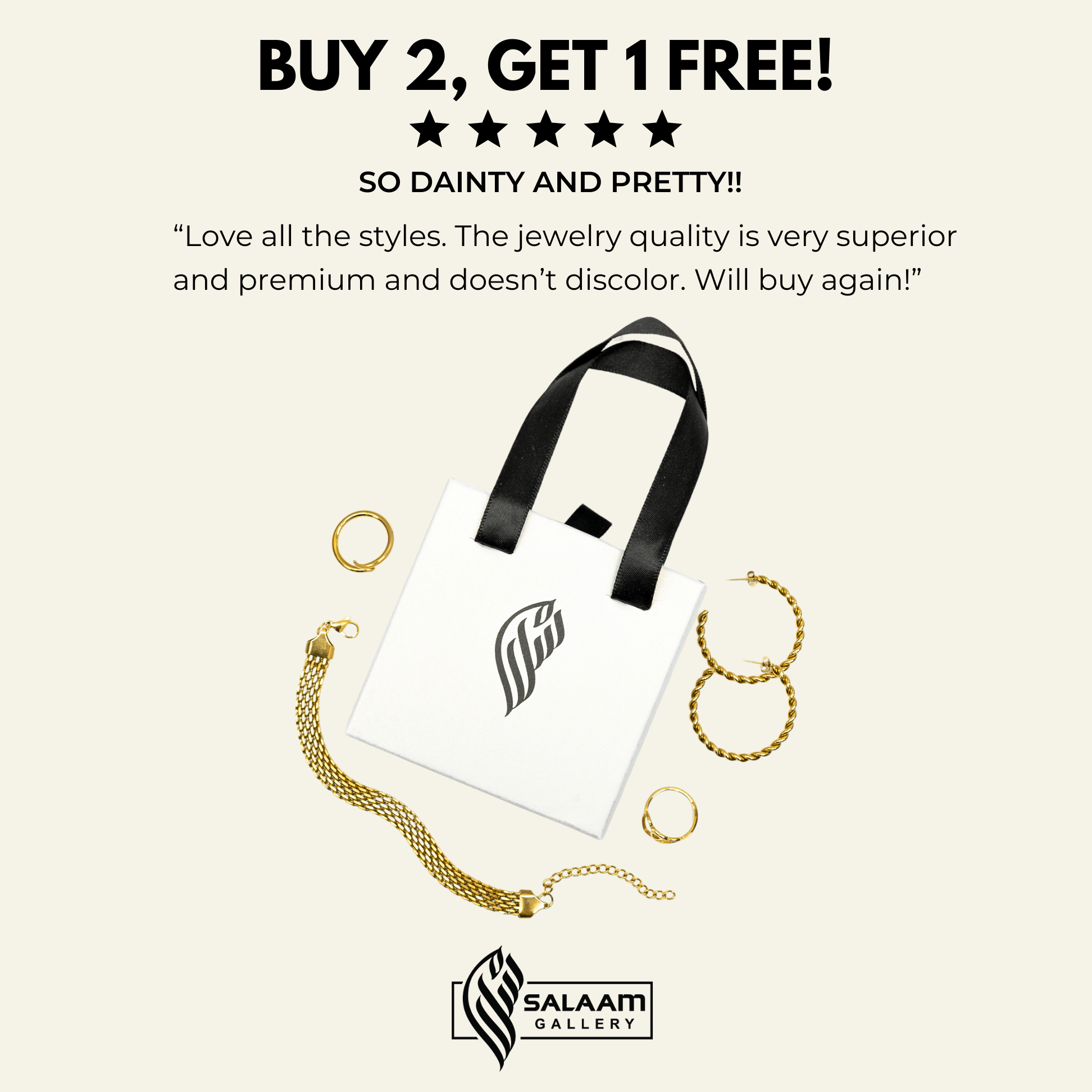 Our lifetime warranty provides comprehensive coverage for every issue you won't encounter with your purchase. We assure you that our jewelry will remain free from fading, tarnishing, or loss of color, even when exposed water, wearing during workouts, and enduring sweat and heat. Our jewelry is designed for longevity. However, should any tarnishing occur, we offer a free replacement. Simply send an email to our customer service team at salaamgallery@gmail.com with your order number and a photo, and we will be ready to assist you.