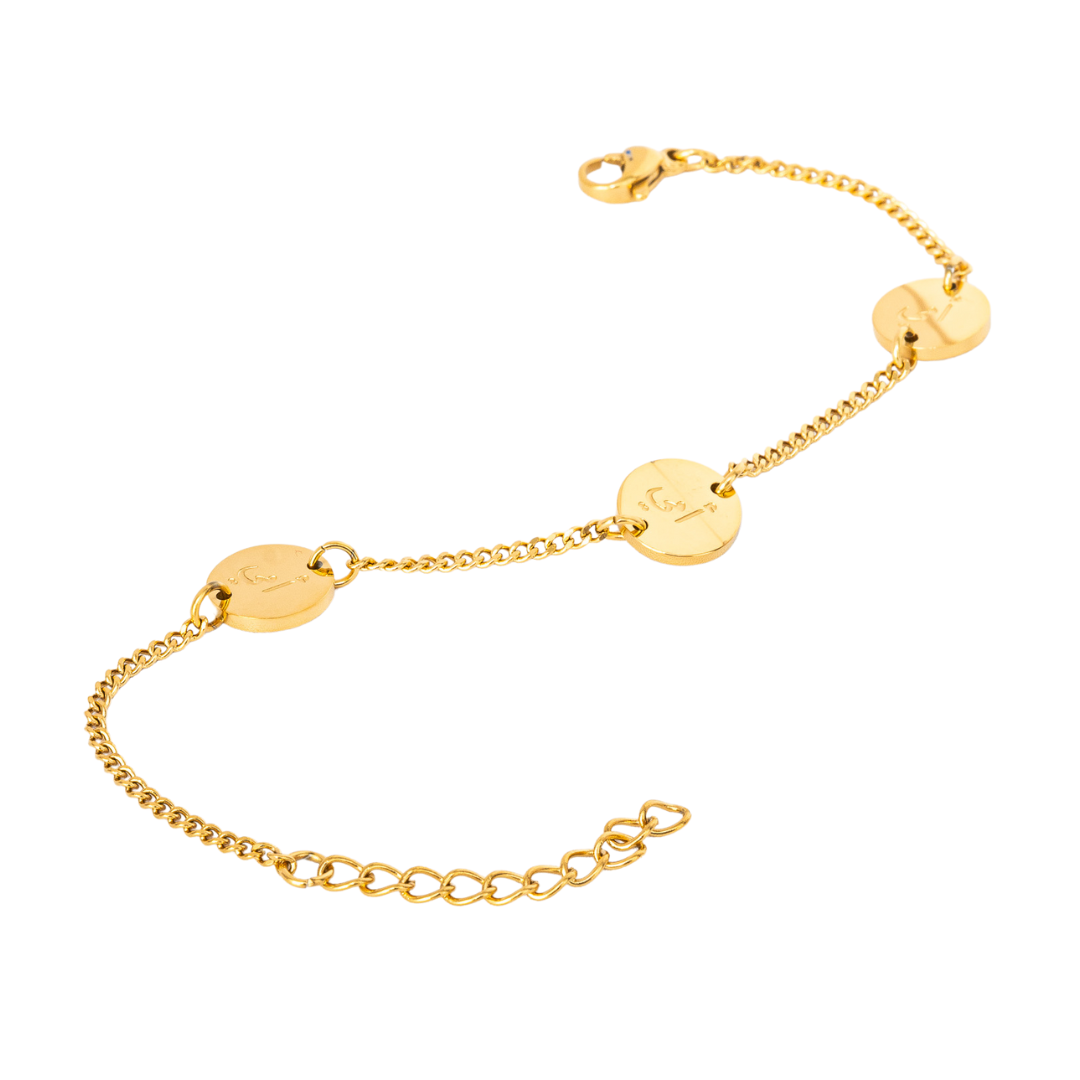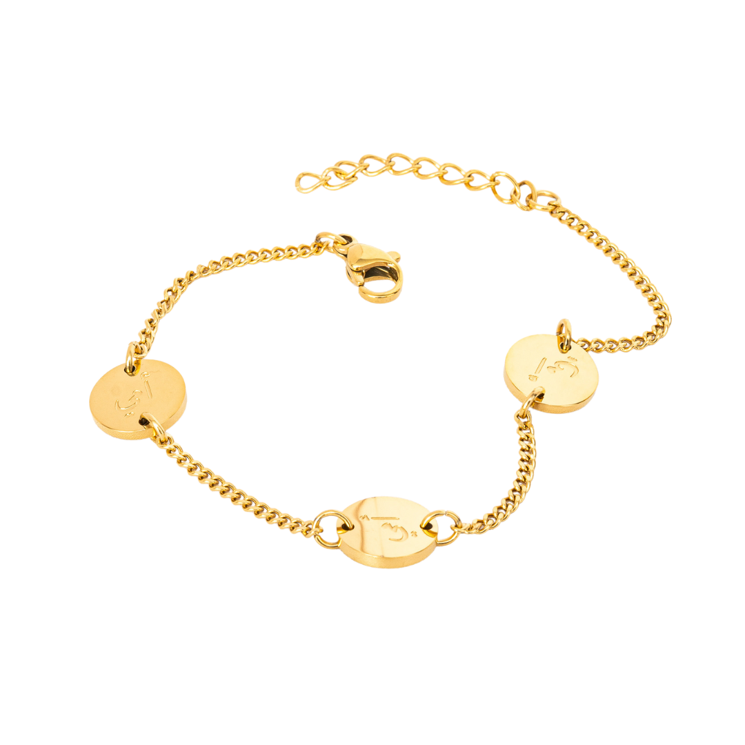 Sabr Shukar Tawakal Patience, Gratitude & Trust in God Gold Plated Arabic Bracelet - Salaam Gallery