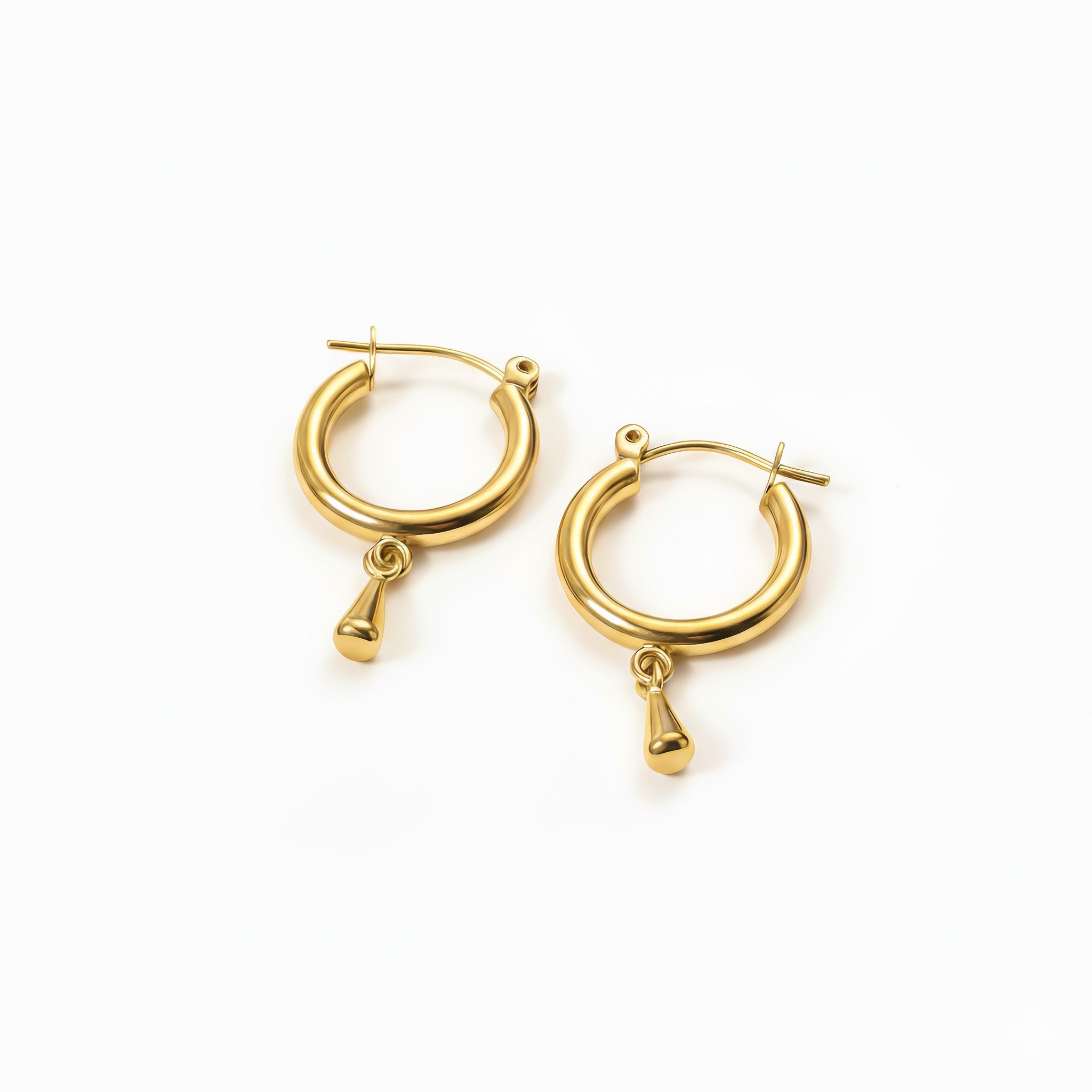 The Mini Dew Drop Earrings are your new go-to essentials — minimalist gold hoops adorned with tiny teardrop charms that shimmer softly with every movement. Designed for effortless elegance, they bring a hint of radiance to both casual and elevated looks.