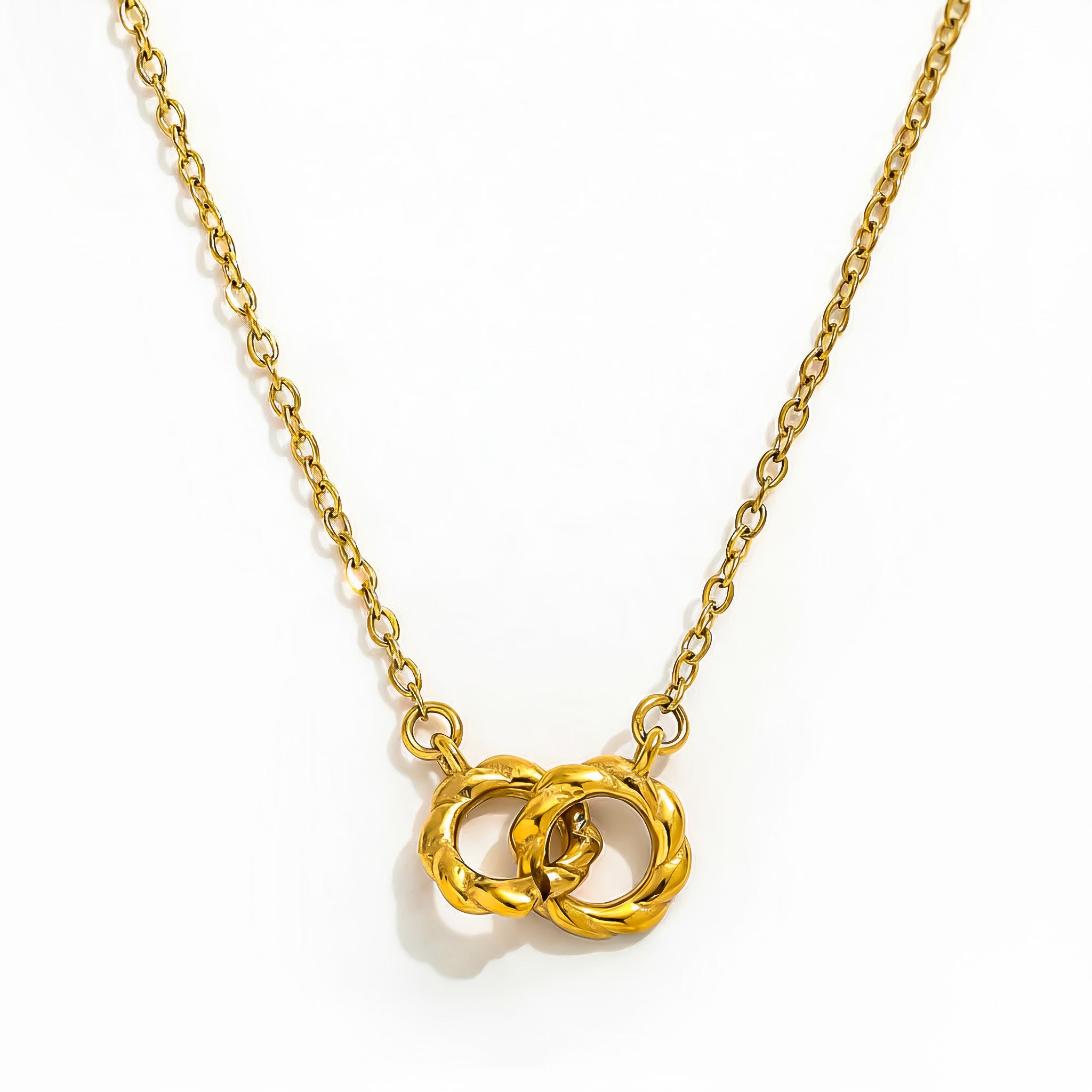 Meet the Mini Everlink Necklace, a delicate expression of unity and everlasting connection. Featuring two interlocked gold rings on a fine chain, this piece adds a subtle touch of meaning and elegance to your daily look — perfect for layering or gifting.