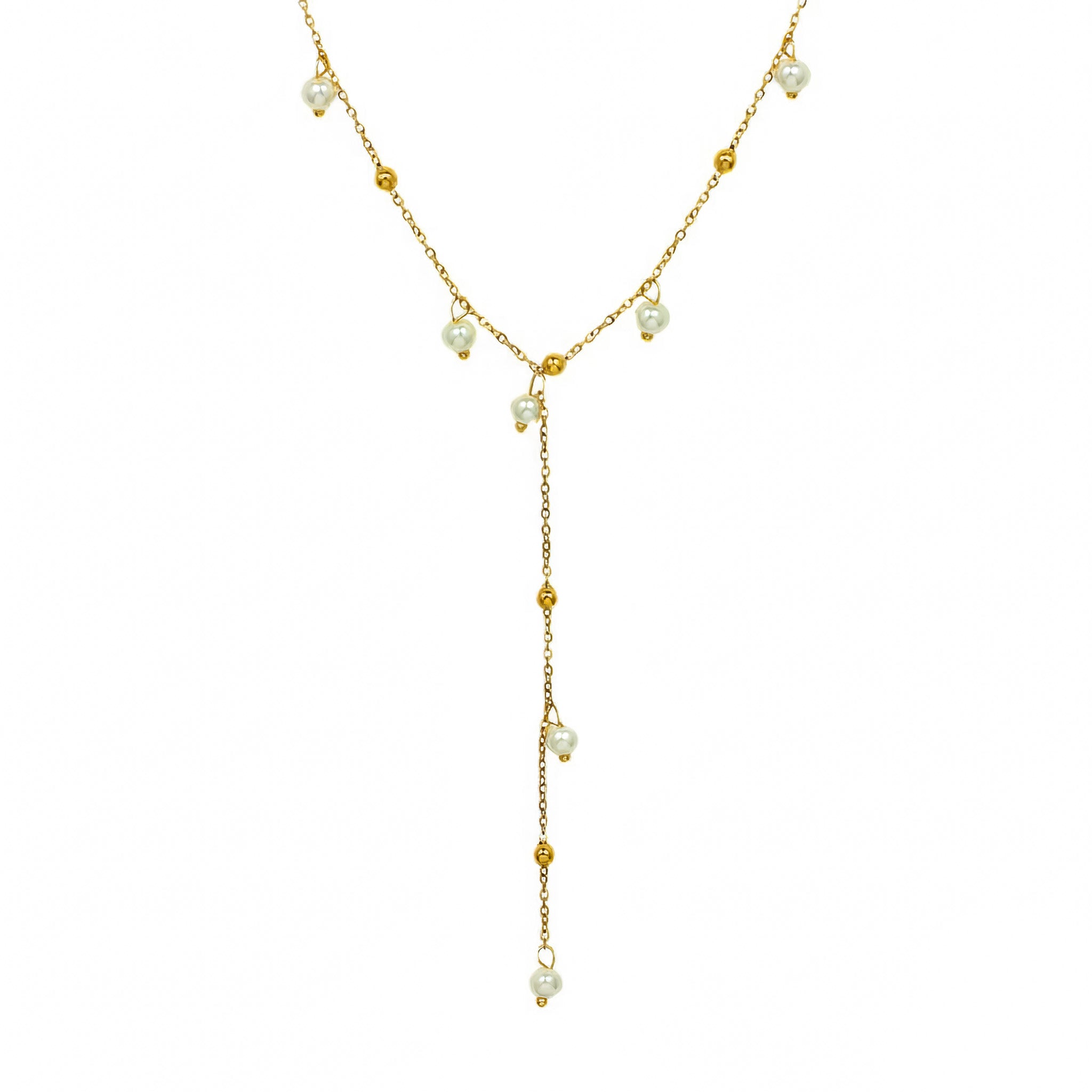 Effortlessly elegant, the Pearl Cascade Necklace brings sophistication to any outfit. Designed with dainty pearls that flow along a gold-plated chain, this piece drapes beautifully with a cascading 3-inch drop tassel — symbolizing grace, femininity, and movement.